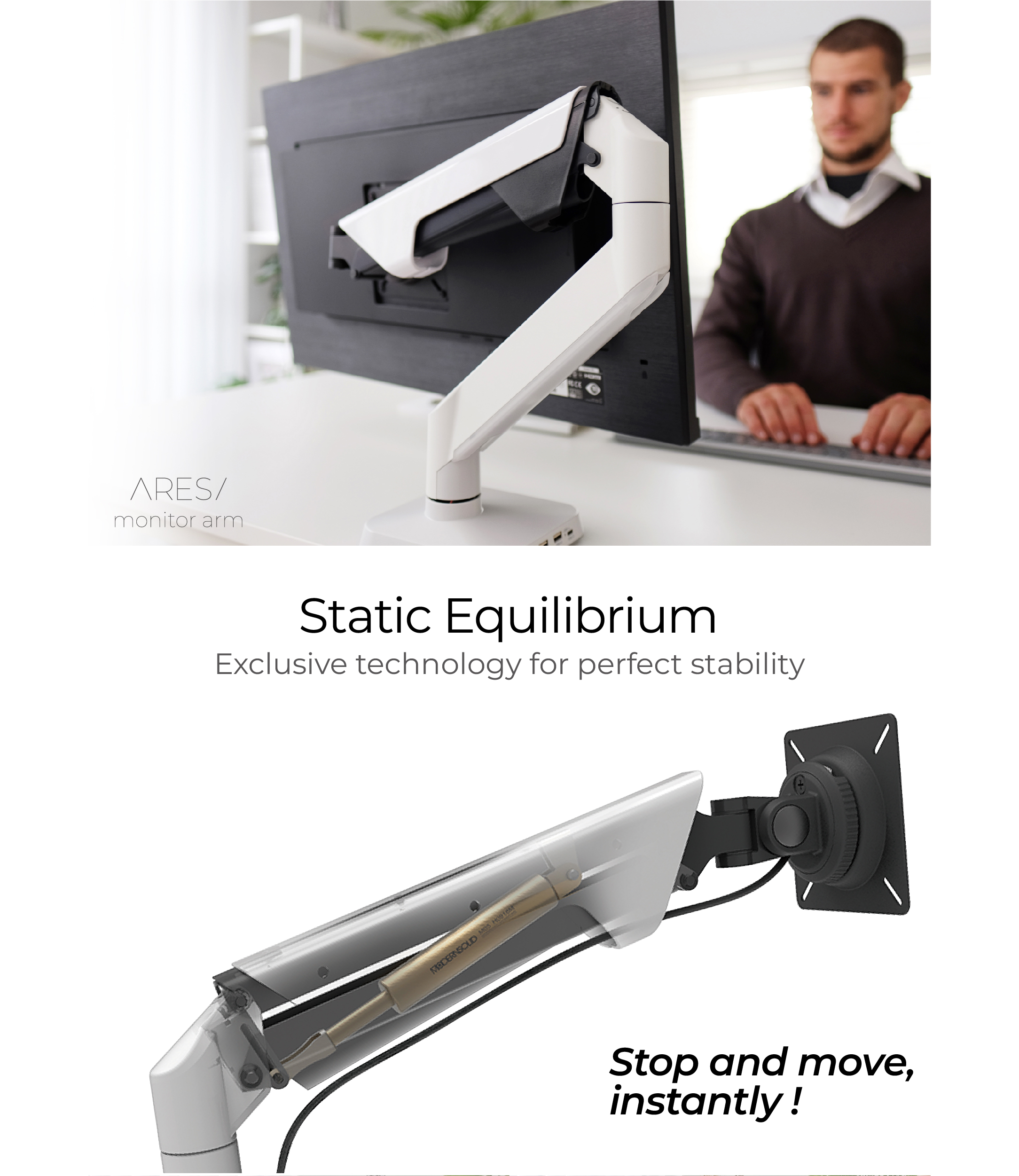 Ergonomic design with Static Equilibrium tech enables effortless adjustment. Compatible with various screen sizes wider motion movement