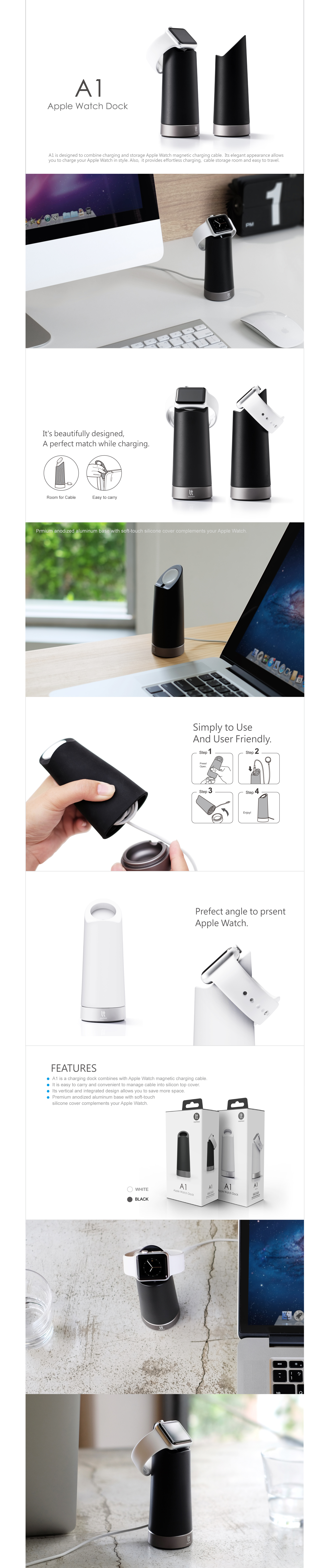 A1 is designed to combine charging and storage Apple Watch magnetic charging cable.Its elegant appearance allows you to charge your Apple Watch in style. Also,it provides effortless charging, cable storage room, and easy to travel.
