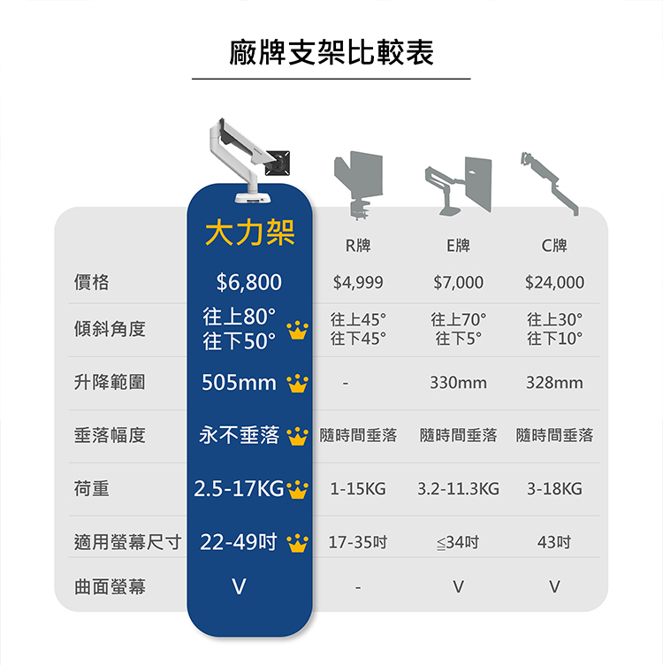 下單時,請務必確認螢幕重量與 VESA 孔位是否合適。